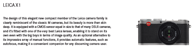 Details of two upcoming digital cameras, the Leica X1 and Leica M9, have been revealed, courtesy of a prematurely posted – and since yanked – microsite. The X1 – "equipped with a CMOS sensor equal in size to that of many DSLR cameras" – and M9 information can all be found in this Flickr gallery.