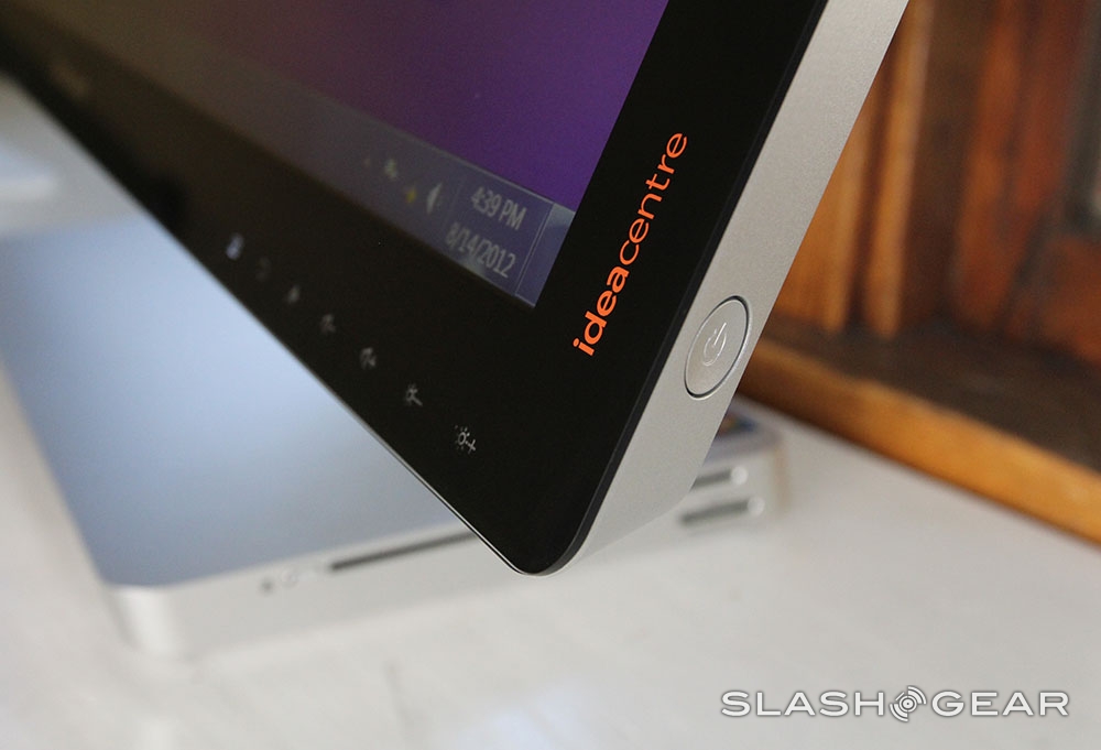 Hit the power button on the lower right of the display (behind the display, rather, as the outer rim angles inward) and the machine lights up with loveliness. You've got a 10-point touch-screen experience ahead of you with several light-up touch-sensitive buttons under the rim near the bottom of the screen as well. There you can brighten up or dim down your display, change sound levels, and adjust what's on your screen with a touch in several other ways.
