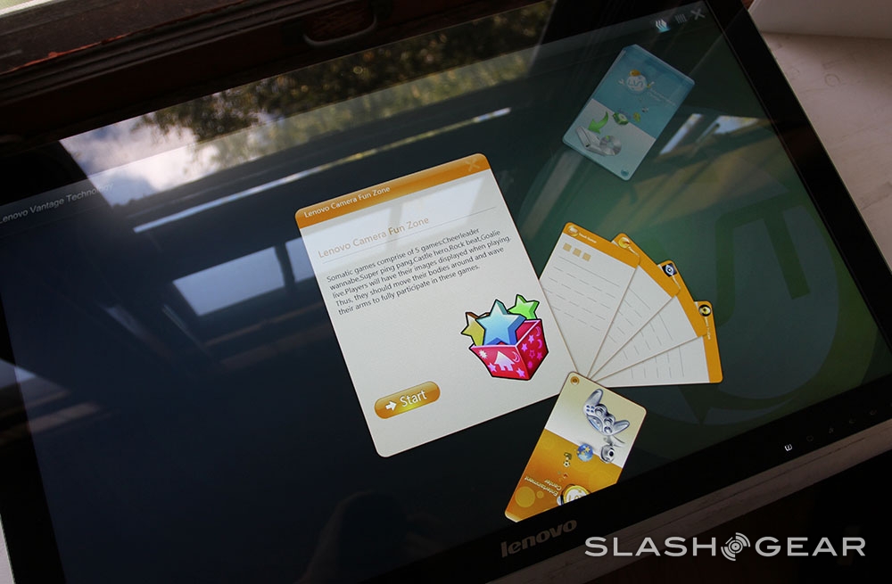 Because this is a touchscreen-centric device, Lenovo has included a hub where you can play a set of games that work entirely with touch. You've got 10-finger touch sensitivity, which makes things rather interesting for the updated Pong they've got ready for you, and you can play the keyboard as well – the musical keyboard, that is. This system is demonstrated in the hands-on video we've got prepared for you right here, as it were.