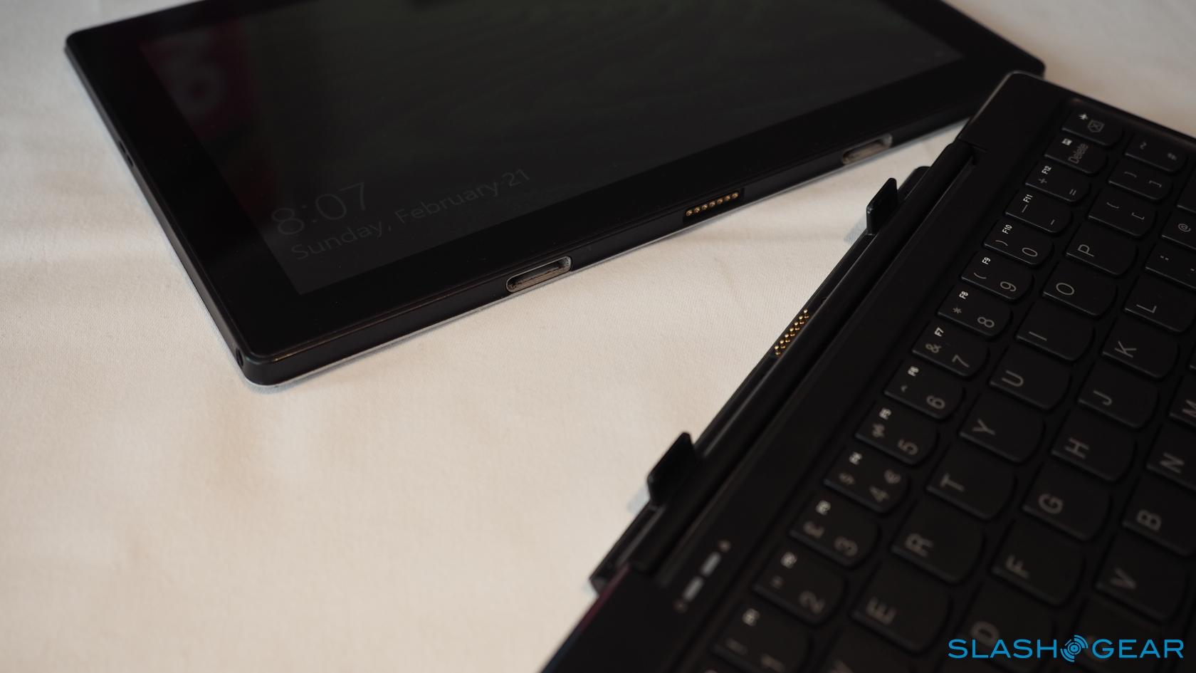 Connectivity includes 802.11b/g/n WiFi, Bluetooth 4.0, and optional 4G LTE. The display, meanwhile, has a Full HD 1920 x 1080 resolution. The machine itself is pretty small and lightweight, with the tablet portion weighing 1.27lbs and the keyboard weighing 1.14lbs. The tablet is 9.2mm thick, and the keyboard is 9mm thick.