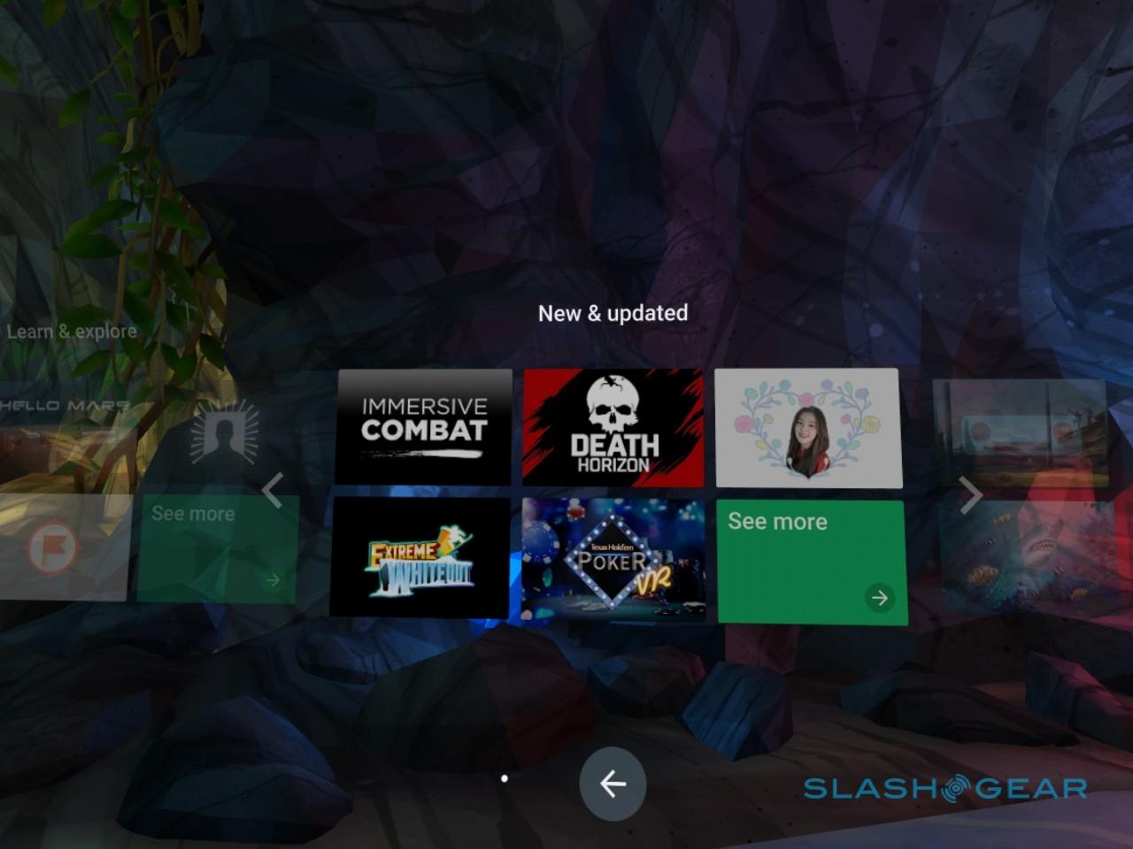You don't need a smartphone in order to set it up, and the virtual keyboard is surprisingly easy to use. Google's Daydream interface will come as no surprise if you've used an existing, phone-based Daydream headset. Think chunky tiles and big iconography. You get access to the VR titles in the Google Play store, along with YouTube and Google Photos.