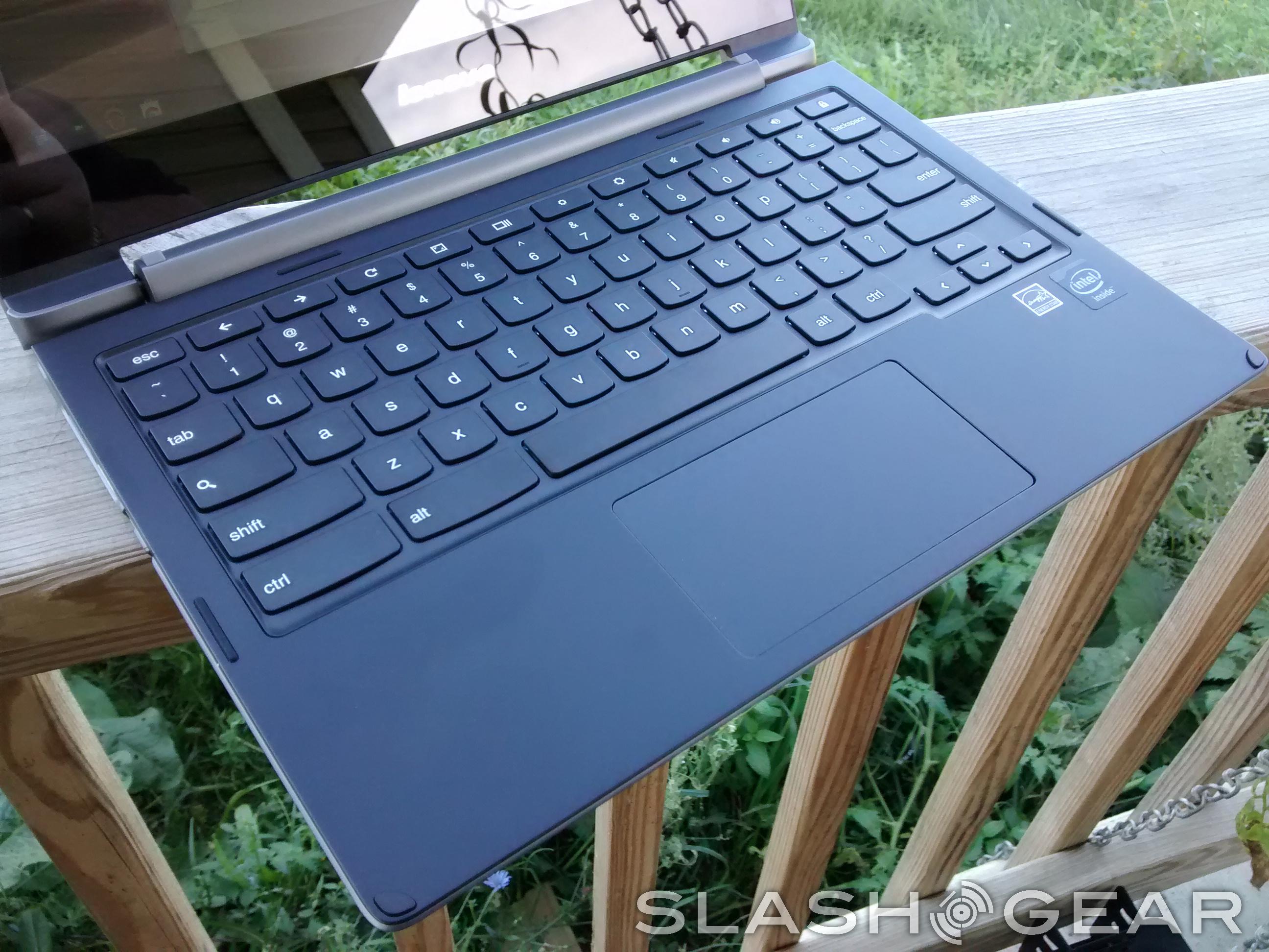 As you can see in the image above, the trackpad is rather large, which is a welcomed change over the average trackpad size seen with some past competing Chromebook models. The keyboard isn't like the ThinkPad Yoga 11e, in that it is a shallow, low-resistance offering that produces very little sound and is easy to type on. This is all wrapped up in a device that ultimately measures in at 11.6- x 8.34- x .07-inches, with a weight of 2.86lbs.