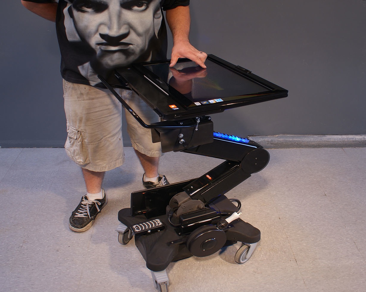 MOD DESCRIPTION: Chris Blarsky began modding in 1995 out of necessity; he wanted a computer case that held two working PCs. When he couldn't find one, he created himself. This time around, Blarsky created a robot-inspired mod, the "MD-5", from the IdeaCentre A700. The mod's name is short for mobile desktop while the 5 is a tribute to "Johnny 5" from Short Circuit, a 1986 science fiction film. The MD-5 is able to move from room to room and has a battery pack for added mobility. Additionally, its multitouch screen is attached to an articulating arm that provides ample range of motion and use.