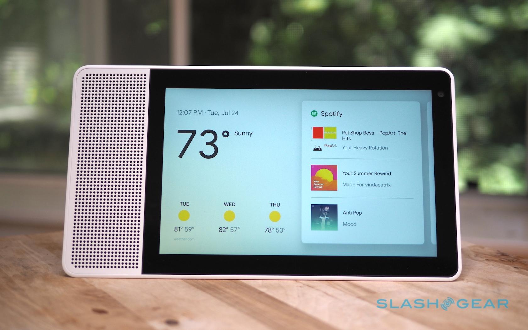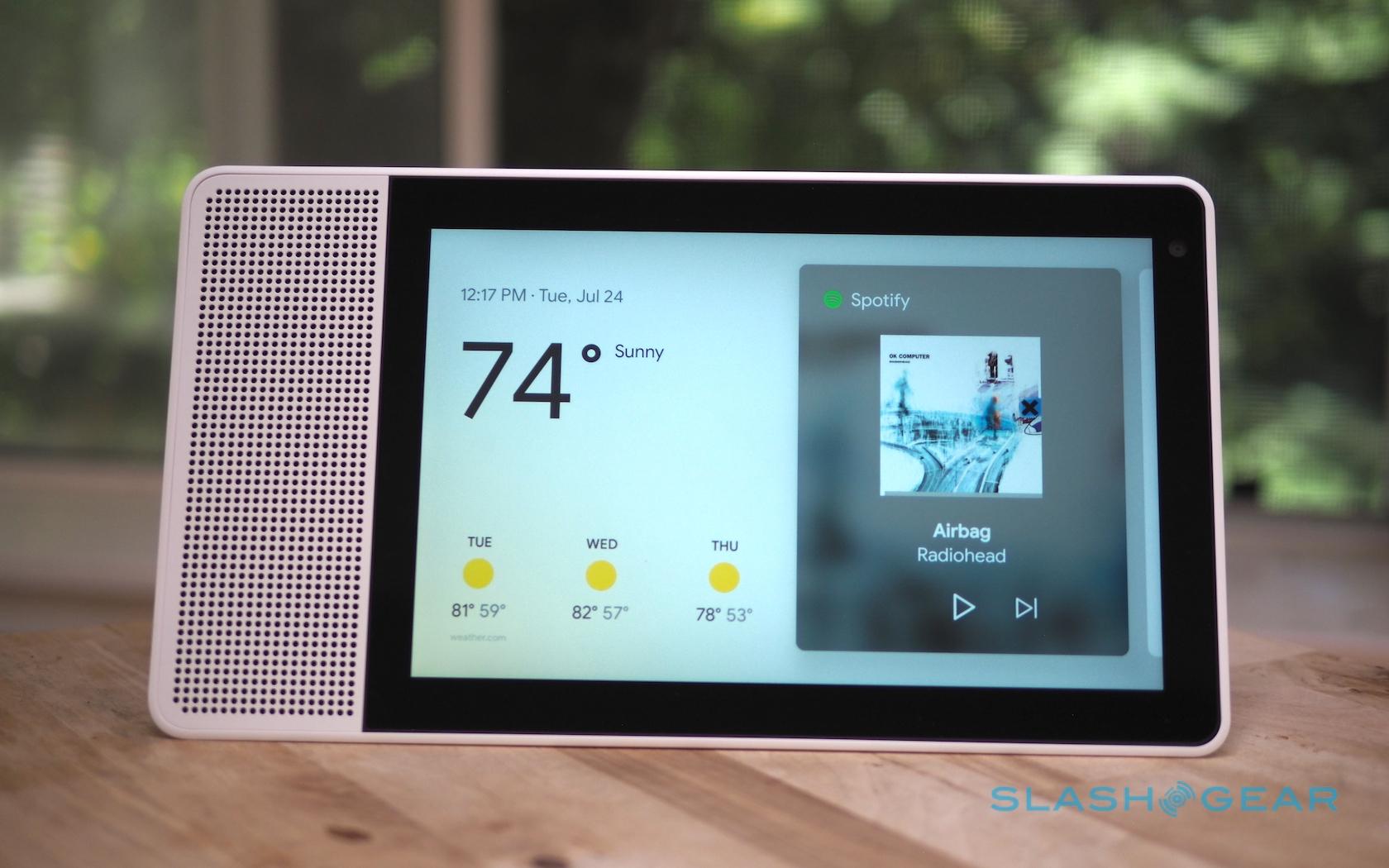 Google arguably has an easier time with it, porting across the "cards" UI we're familiar with from Android smartphones. The Smart Display gets a 720p webcam for Google Duo calls, too, with a handy privacy shutter that physically blocks the camera when you don't want to be contacted. There's also a dual 10W speaker array for music.