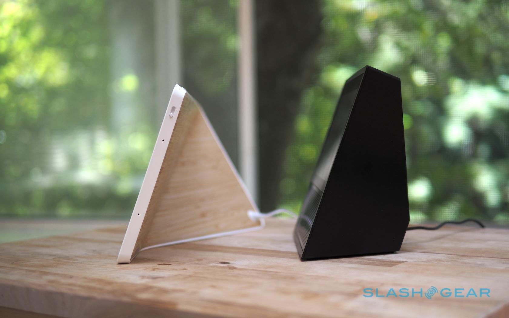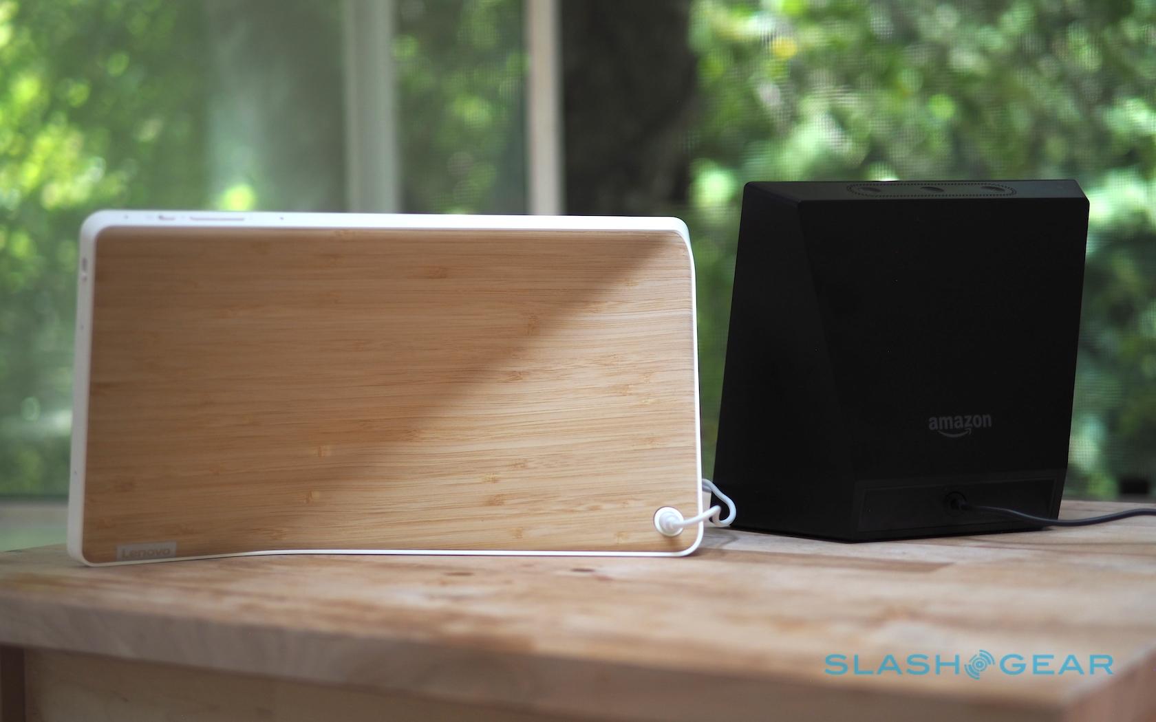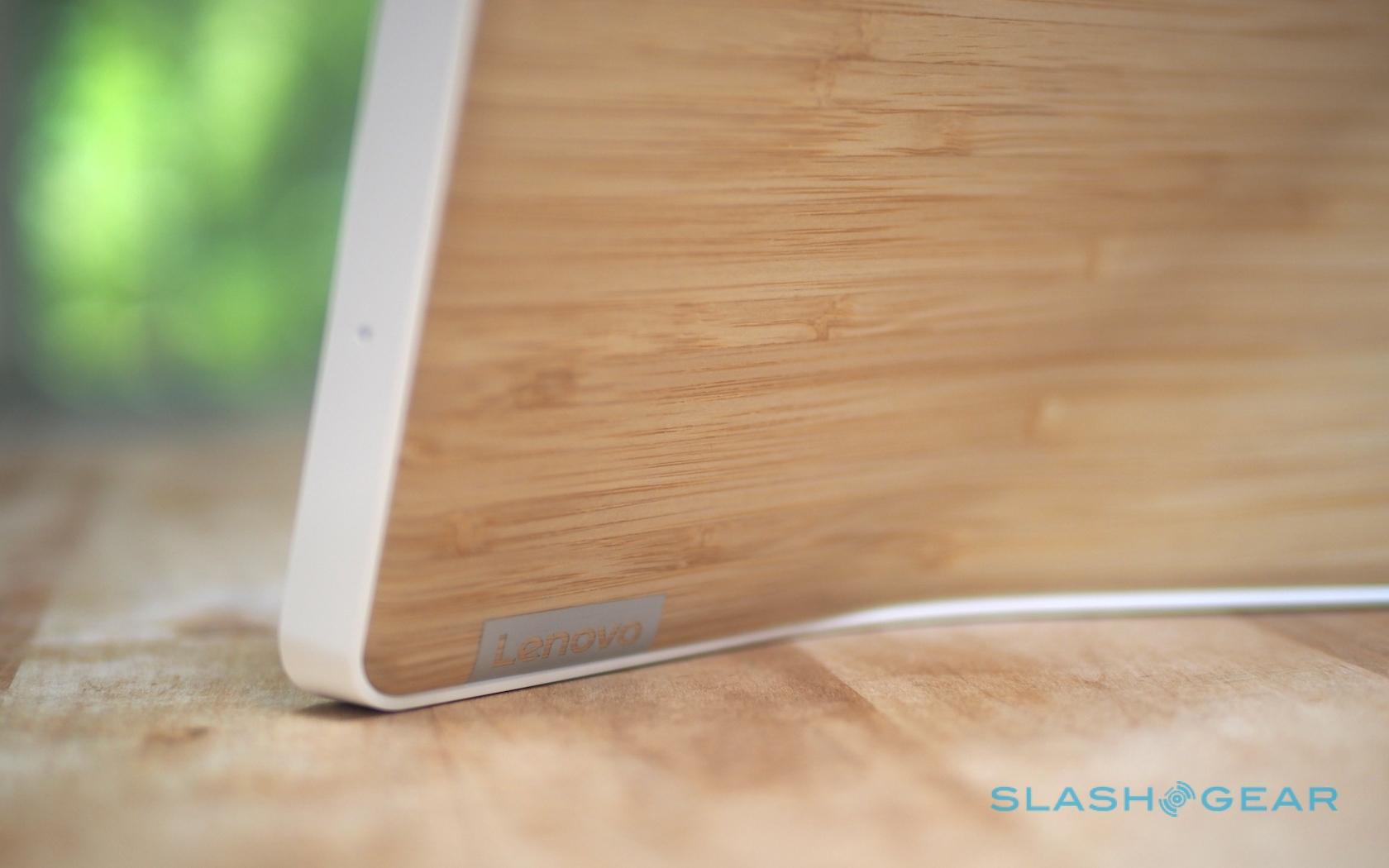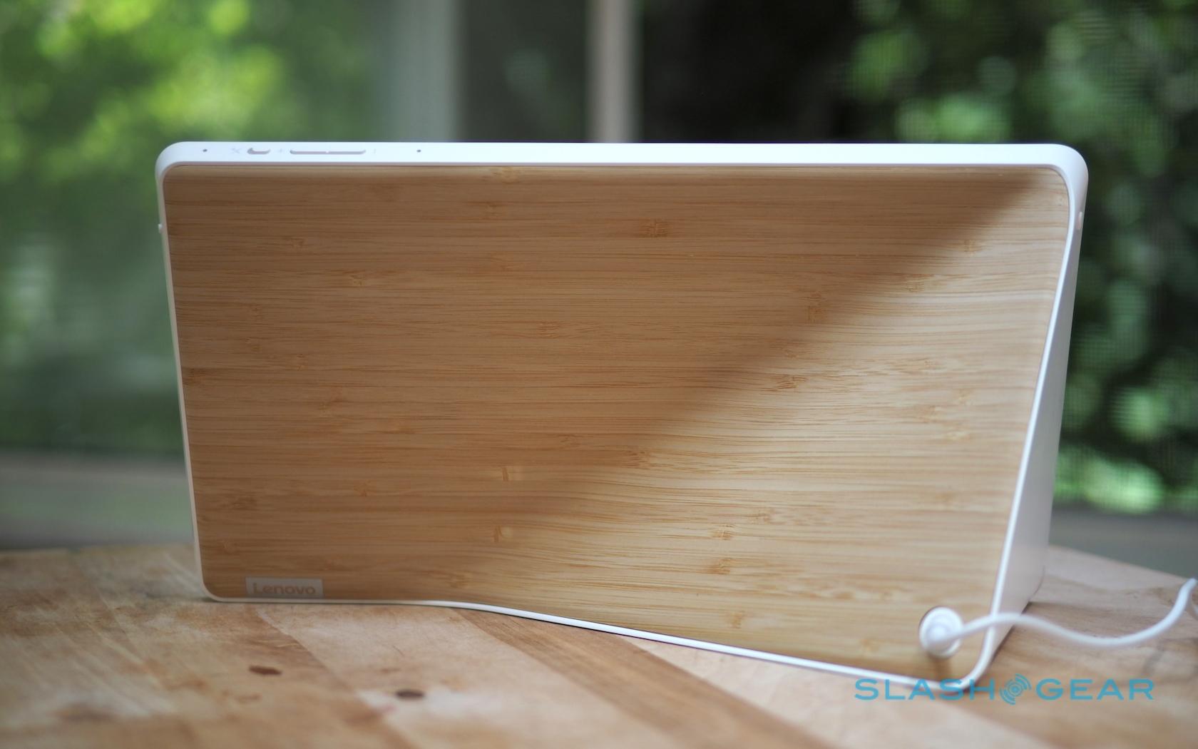 On the back of the 10-inch model there's a fetching bamboo panel. The smaller 8-inch version gets soft-touch grey plastic instead.