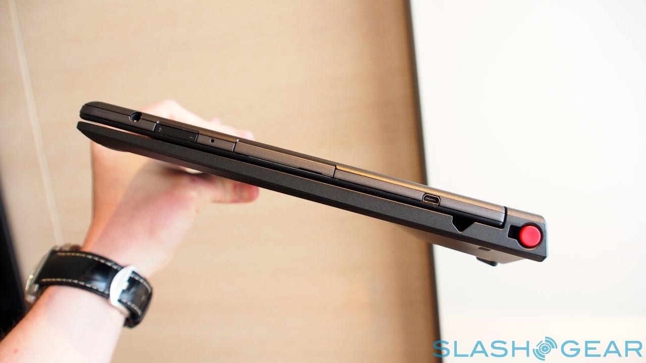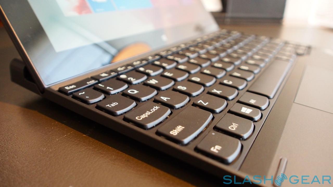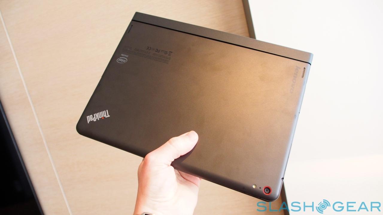 There'll also be the Ultrabook Keyboard, with a trackpad and QWERTY layout; the ThinkPad 10 slots in (at a single angle) for typing, or clips into place magnetically for carrying. We were able to grab the tablet by the keyboard and shake it, too, without the slate falling free.