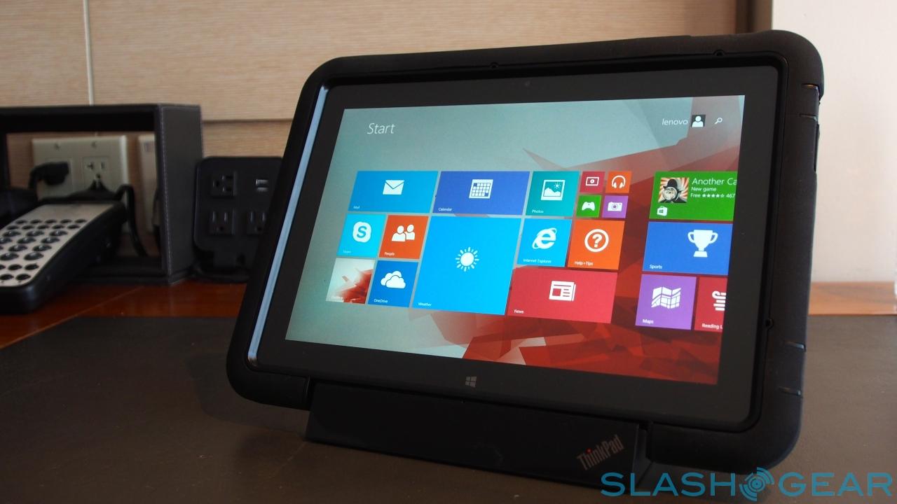 Although not specifically billed as ruggedized, the ThinkPad 10 does meet certain MIL-SPEC requirements for rough treatment. However, Lenovo will also offer a truly ruggedized case – complete with chunky rubber bumpers over an impact-resistant polycarbonate shell, and with sealed port covers – that has an adjustable carry-handle on the rear, too.