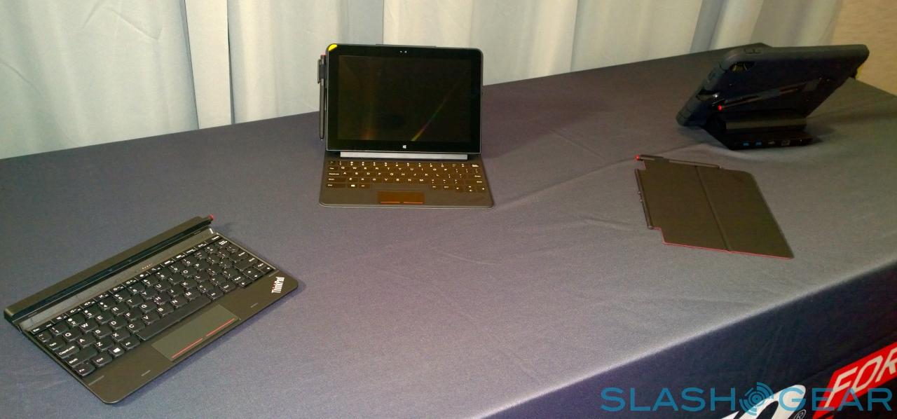 Other accessories include a Quickshot cover, which clings magnetically to the ThinkPad 10 and acts as a protective cover and stand, in addition to having the same flip-down corner that exposes and boots up the camera.