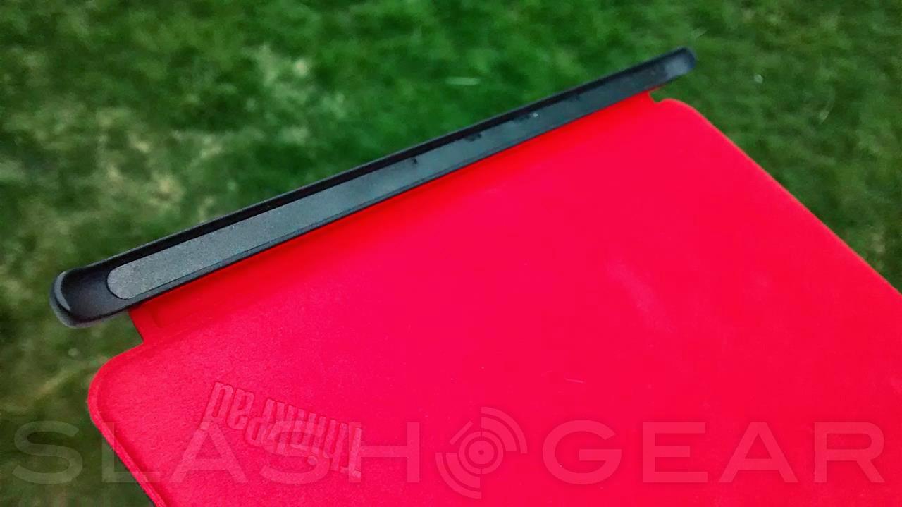 Those who choose to get the $35 Quickshot cover will gain a couple extra features with the ThinkPad 8 — namely, the corner flap that folds down and triggers the camera, making it easy to snap a picture without opening the cover and firing up the camera app. The flap is held open with an embedded magnet, which isn't noticeable by touch or visibly.