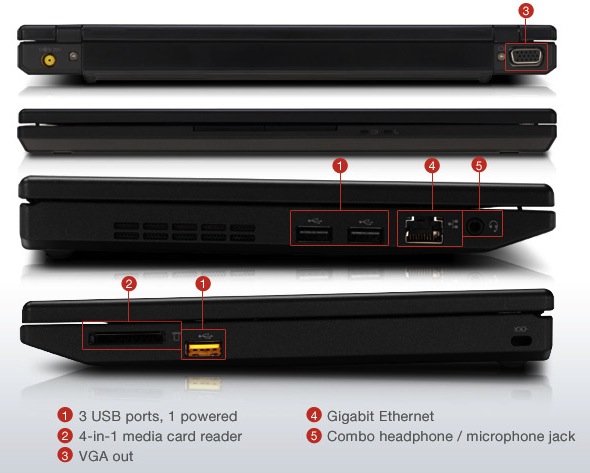 There's also standard WiFi 802.11n, together with optional Bluetooth and integrated 3G. As well as the usual "midnight black" Lenovo finish, the company will also be offering the X100e in "heatwave red". Ports are relatively basic, limited to three USB 2.0 (one of which is powered), a 4-in-1 memory card reader, gigabit ethernet, VGA and a combo audio in/out socket.