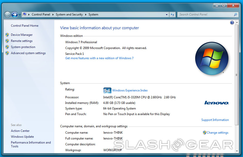 Lenovo's ThinkVantage is appreciated, if only for its ability to extend the battery by turning off some of the more unnecessary features. But the App Shop, a full-screen interface for things like "Google Search" and "Twitter", is not. There's more commercial software as well, but nothing you couldn't download through a standard browser. All of this wouldn't be nearly as annoying if the installation media was included, but alas, I haven't seen that in years. My standard tactic for a new machine is to download a Windows ISO and install it fresh with the license included on the machine, and for those with the know-how, I'd recommend the same here.
