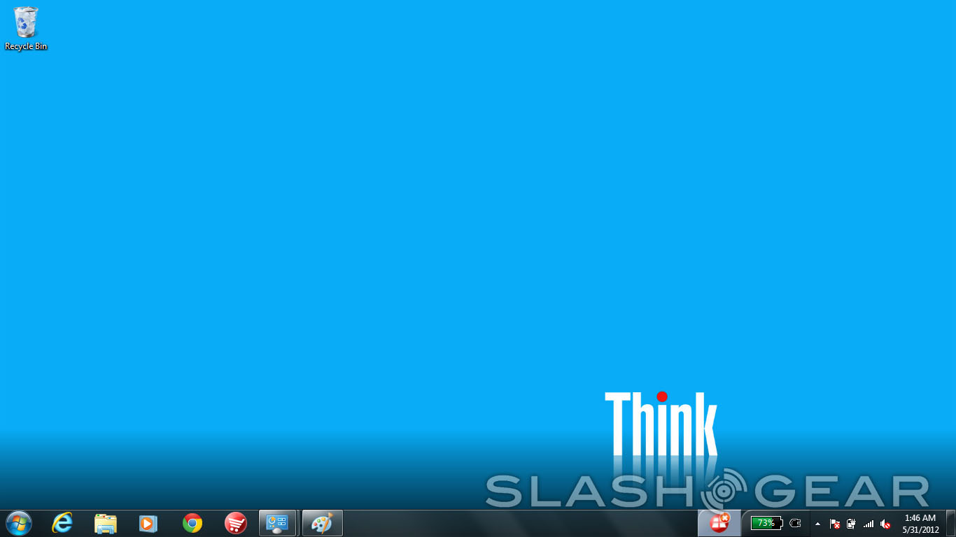 Lenovo keeps its business machines pretty clean when it comes to Windows – well, that's traditionally the case, anyway. There's a few programs here that I'd have installed anyway (Flash player, Google Chrome) and a lot that I wouldn't (Adobe Air, Evernote, SugarSync, Google Toolbar and the obligatory Microsoft Office trial). Lenovo seems to have added quite a few pieces of software that aren't necessary because they're built into Windows – things like a second battery meter.