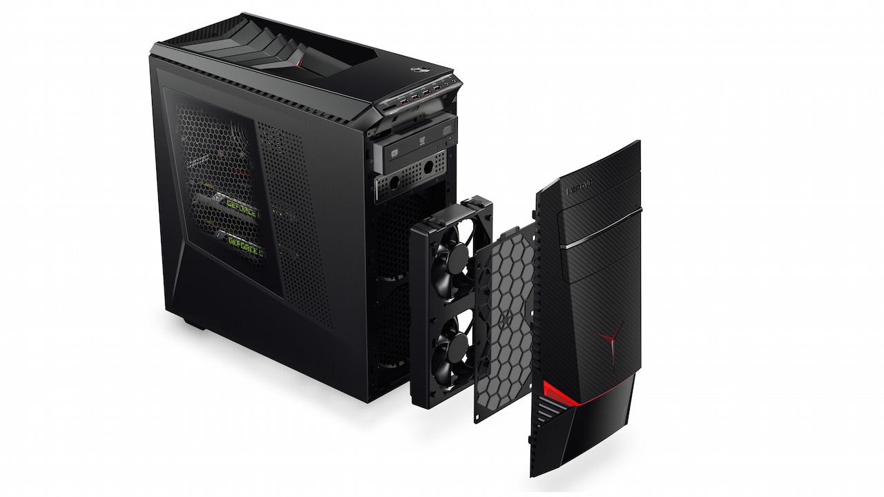 Similarly, there's the IdeaCentre Y700 desktop PC, which features largely the same specs, though the graphics are a touch more powerful with up to an NVIDIA GTX 970 4GB GDDR5 card, additional hard drive bays, 7.1 Surround Sound, and separate headphone and microphone jacks. This model starts at $999 USD.