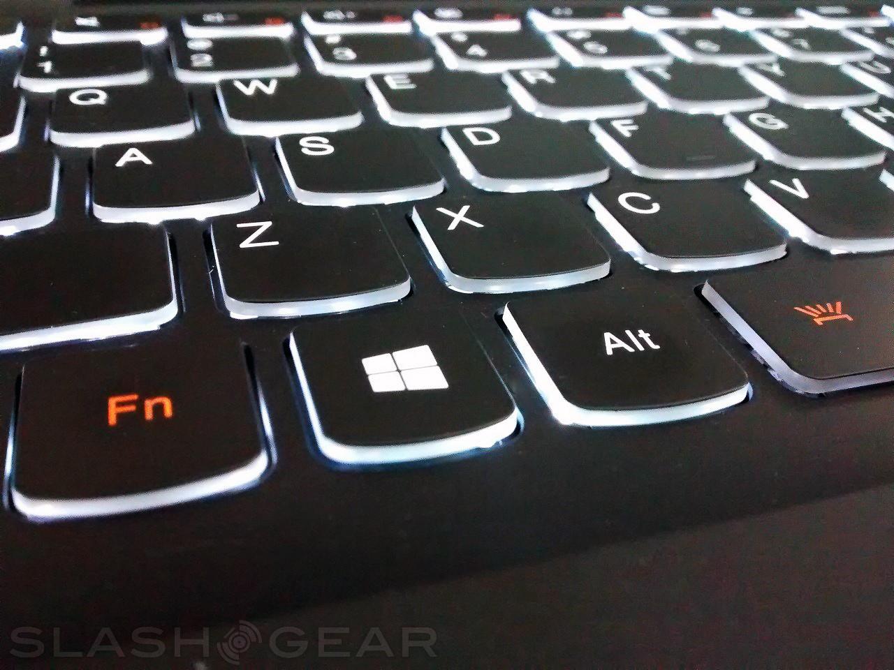 The keyboard, you'll notice from the images, isn't quite the same as the well-known Thinkpad offering (it is a Yoga, after all). The keys are a bit flatter and more shallow, though they type just as well as their larger, rounder counterparts. The design looks more modern than what you'll find on the, for example, Thinkpad 10's keyboard dock, and — as demonstrated in the image above — the backlight manifests well even in relatively bright settings; the light is even and bright, and serves as a solid aid in using the device. This is as opposed to the Thinkpad X1 Carbon, which bears a backlight that, unfortunately, seems so deeply embedded in the machine that its aid in casual use is rather minimal.