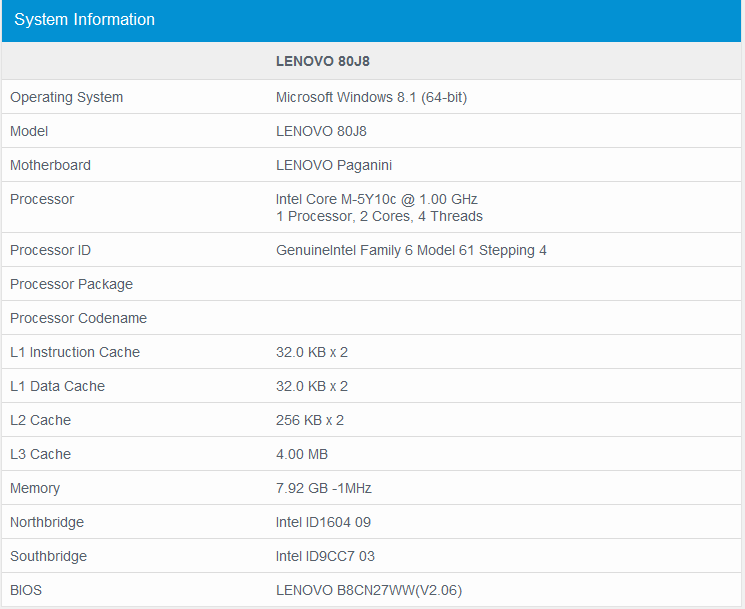 As for what lies under the hood, that'll depend on what configuration you get. There's up to 8GB of RAM possible, which comes alongside an Intel HD Graphics 5300 and Intel Core M 5Y10c 0.80GHz processor. The system is loaded with Windows 8.1 64, as well as Lenovo's own software.