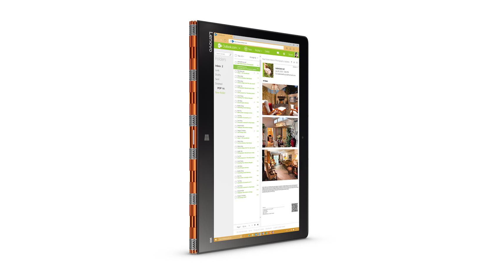 Lenovo's slick watchband hinge is back, this time on the new YOGA 900 convertible tablet. Packing Intel's 6th-gen Skylake Core i5 and Core i7 processors, squeezed into a 14.9mm thick, 1.29kg metal chassis, the YOGA 900 bills itself the world's thinnest Core i convertible.