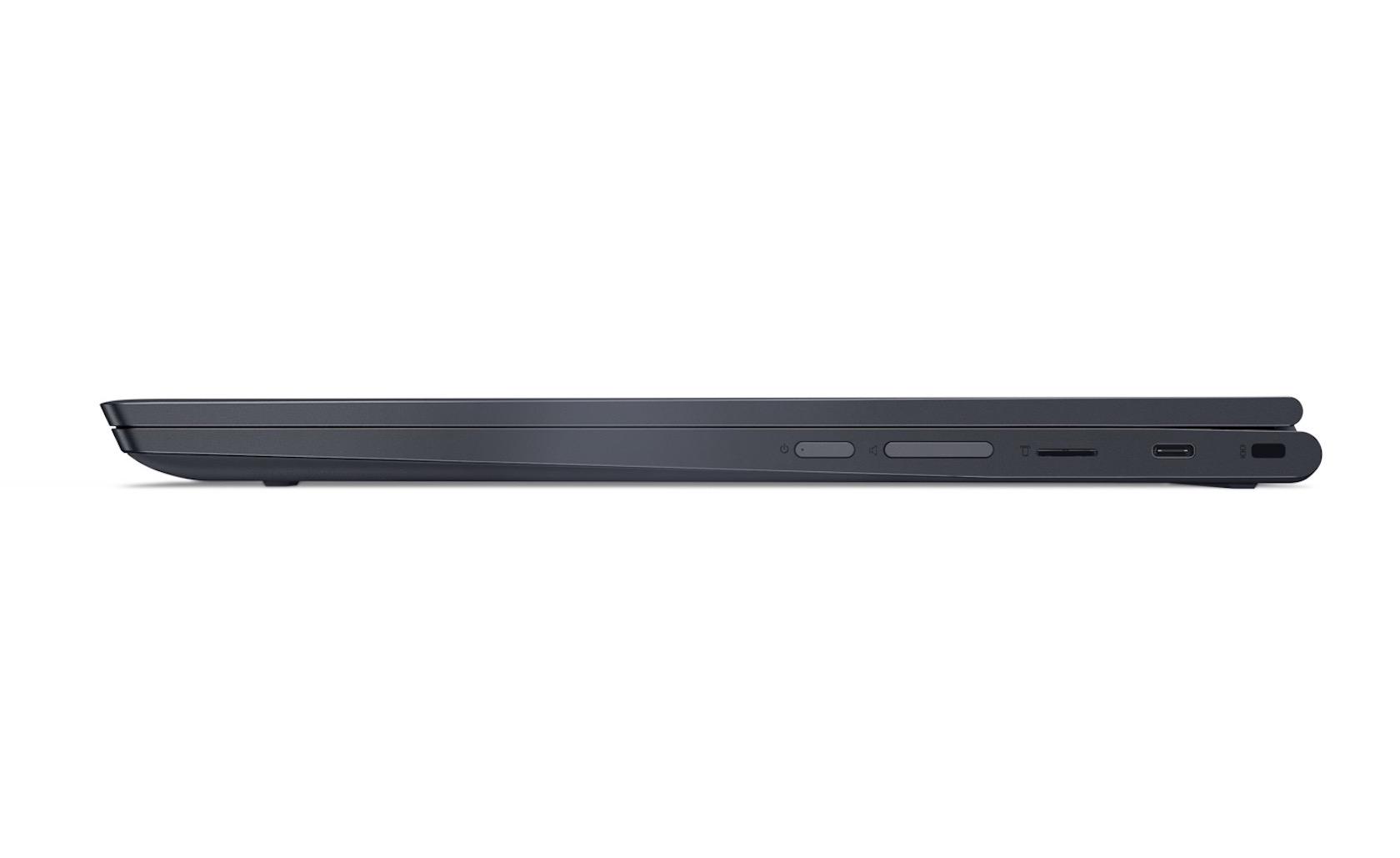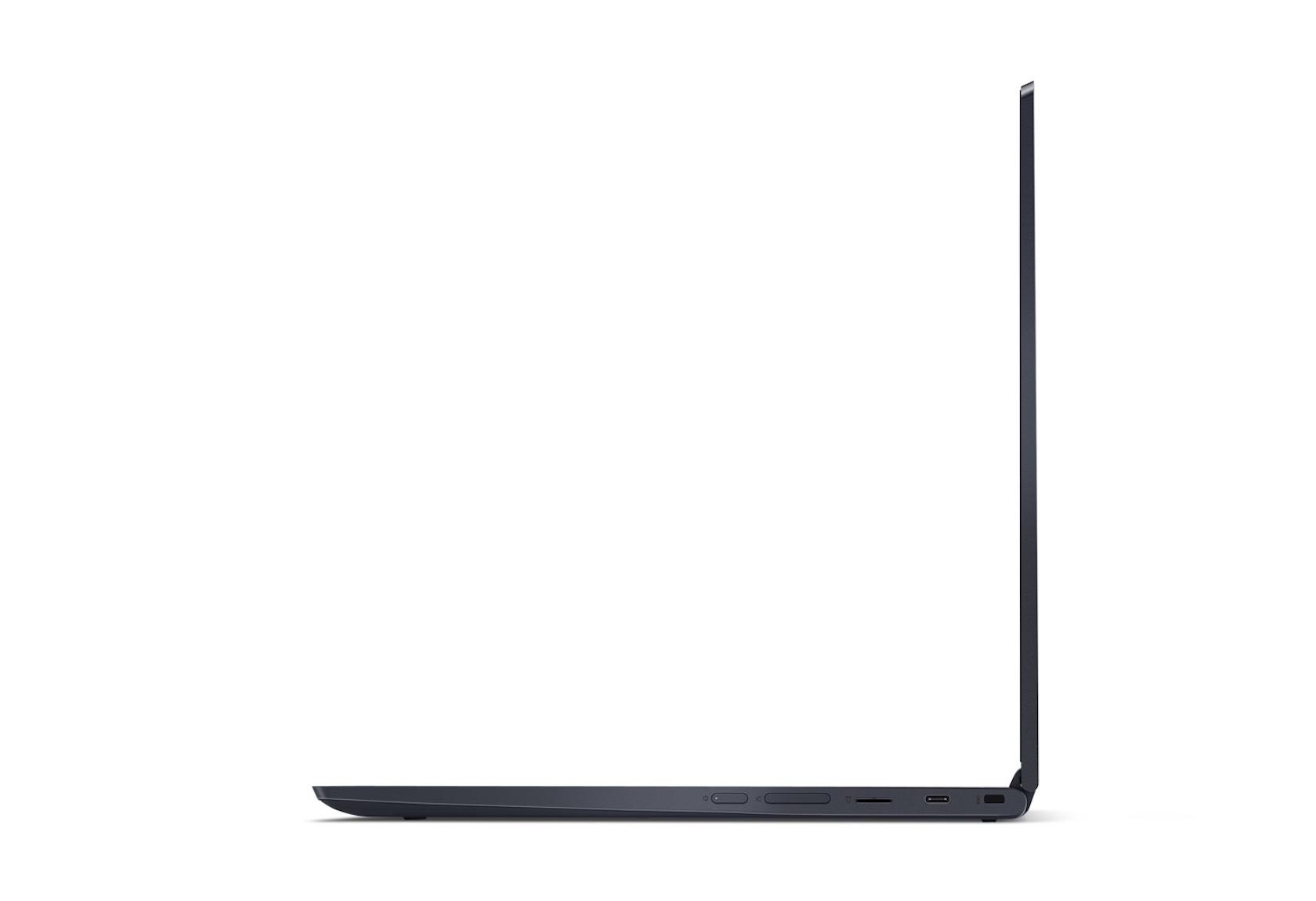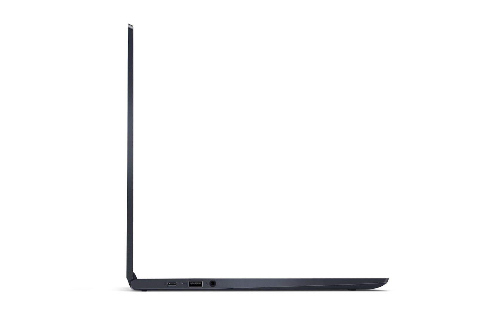The display measures in at a healthy 15.6-inches, and can be had in Full HD 1920 x 1080 or UHD 3840 x 2160 forms. Either way, it's an IPS touchscreen, with what Lenovo is describing as "near-edgeless" bezels. The metal casing is finished in Midnight Blue, and there is no shortage of ports, either: a regular USB 3.0, two USB Type-C which can each handle power, or an external display, or data, and finally a headphone jack. There's also a microSD card slot for adding more storage.