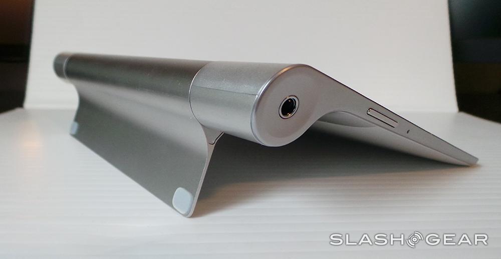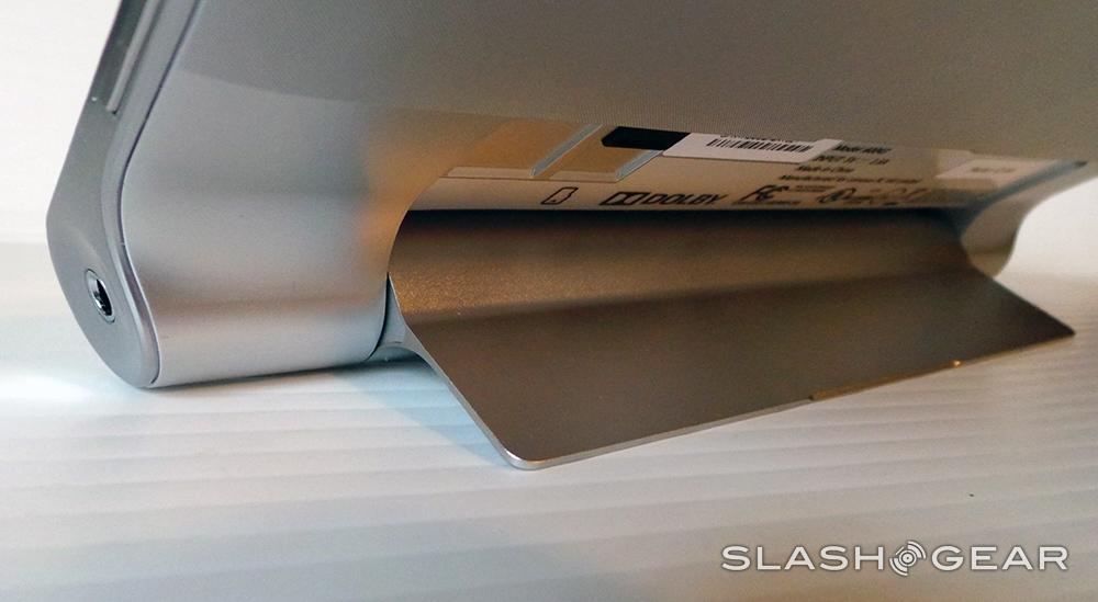 This device does away with the competition with the ability to stand up on its own. Unlike its larger companion (the Lenovo Yoga Tablet 10), you're able to lower this device back to nearly any angle, flat to nearly 90 degrees. The larger tablet falls backwards under its own weight if you move it back to 45 degrees, while the Tablet 8 is so light it's able to stick up for itself any angle you please.