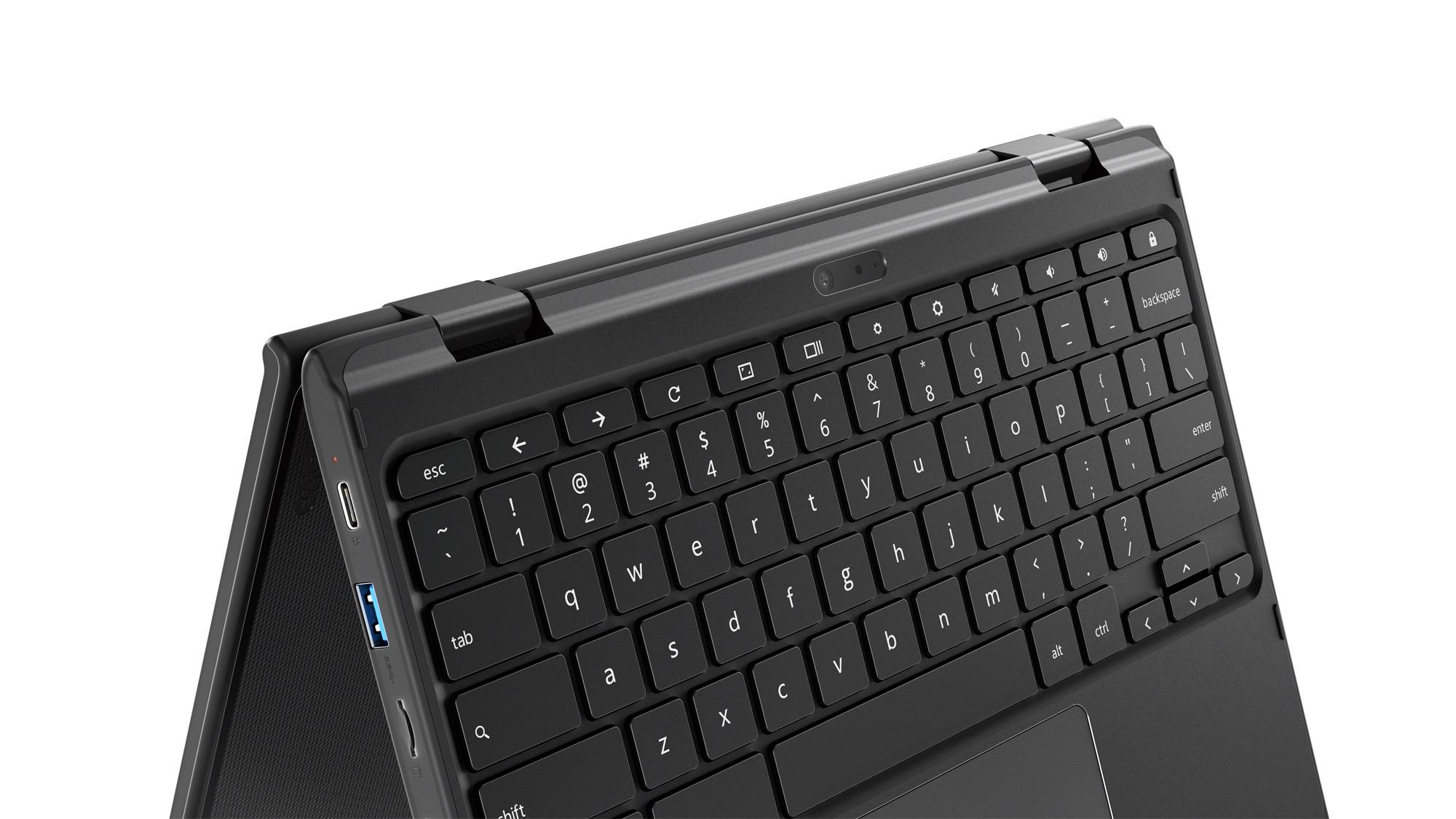 Inside, there's an Intel Celeron N3450 processor, paired with up to 8 GB of RAM and 64 GB of storage. Battery life is up to 10 hours, and the whole thing weighs 2.97 pounds. The 500e's 5-megapixel camera faces outwards, too, so that it's easier to take photos of the classroom or field-trips. It'll go on sale this month.