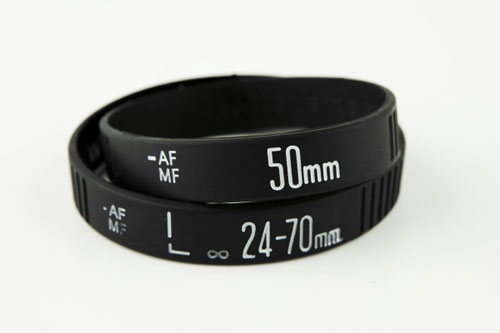 A couple new bracelets for the camera geeks out there have turned up on the Photojojo Store. The things look like the rims around lenses on DSLR cameras. They come in two styles with one marked 50mm and the other 24-70mm.