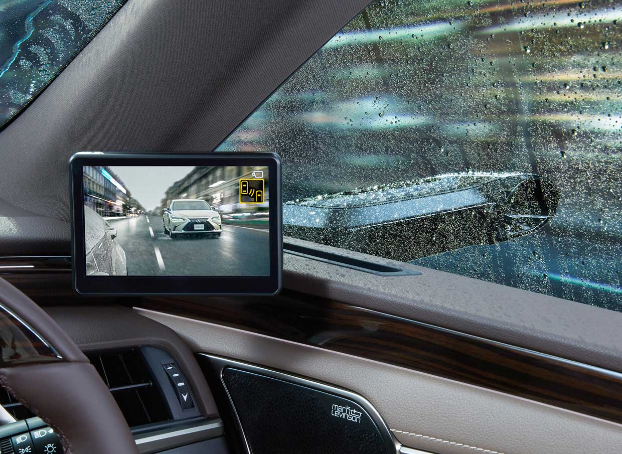 Lexus calls the system Digital Side-View Monitors and the images each camera captures are beamed to 5-inch display monitors located inside the cabin. Each of the monitors are at the base of the front pillars. The side cameras are shaped in a way to prevent accumulation of rain and snow from blurring the view.