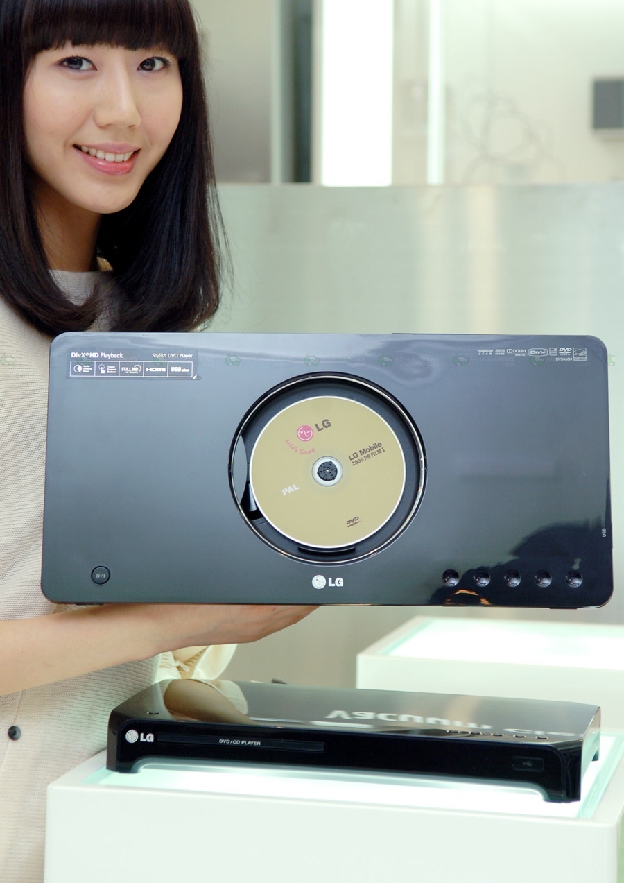 LG has today announced two stylish and lifestyle DVD players that didn't get to unveil at CES 2009. Unless I missed it, I don't remember see any wall-mounted and slim factor media players at CES show floor. One of them supports Dvix HD video playback and the other enables MP3 music direct recording.
