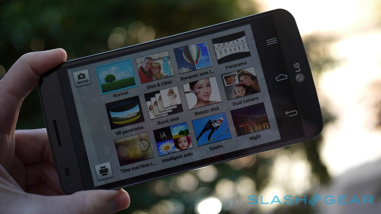 What the G Flex does borrow from the G2 is its camera app, which supports various shooting scenes, panoramic shots, an HDR mode, and more gimmicky options like a dual-camera mode which can combine images from the front and rear cameras simultaneously, and a "time machine" mode which introduces motion blur.