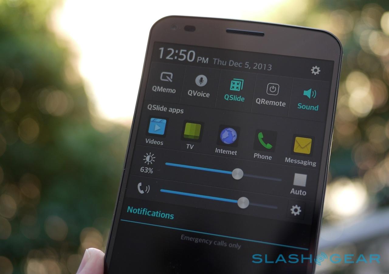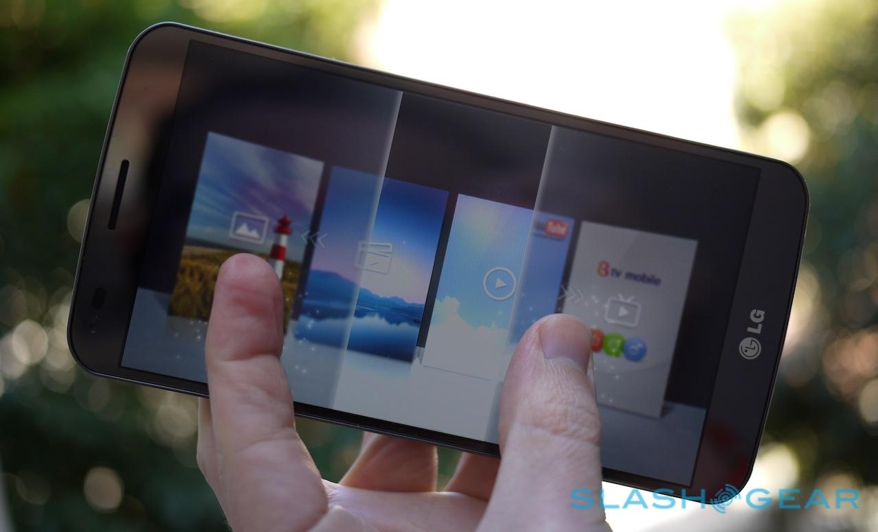 LG's customization of Android 4.2.2 Jelly Bean is by now a familiar one, an at-times cluttered UI that nonetheless has a few gems that we wish other OEMs would "borrow" for their own phones. We're big fans of LG's tap-to-wake gesture, which brings up the lockscreen with a sharp rap on the display, and the split-screen Dual Window mode makes more sense on a bigger panel. It's straightforward to bring up, say, the email app and the gallery, and drag photos from one to the other.