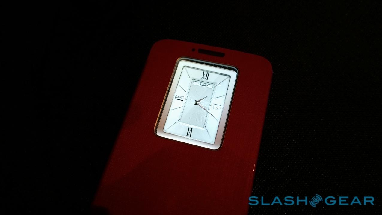 LG has "borrowed" Samsung's windowed case from the Galaxy S 4, for its own LG G2 Quick Window Case, complete with a small opening in the cover-flap. It's a bigger window than Samsung uses – portrait, rather than landscape – and LG describes it as giving a "small phone in a phone": you can see time, date, and weather; interact with calls, messages, and alarms; and control your music playback. One advantage over Samsung's is that, thanks to that big cut-out, you can still use the G2's camera when the cover flap is folded all the way back, rather than having it dangle. LG will offer the Quick Windows Case in seven colors, and users will be able to switch background images as well as pick between analog or digital clocks.