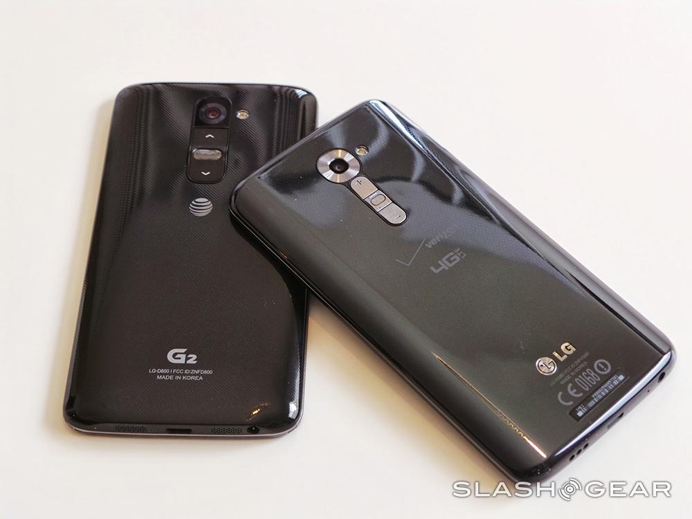 ABOVE: The AT&T version of the LG G2 looks and feels nearly identical to the international version, while the Verizon version of the LG G2 is slightly thicker (to make room for its wireless charger inside – unique to that model) and works with a different set of buttons that do the same thing as the original.