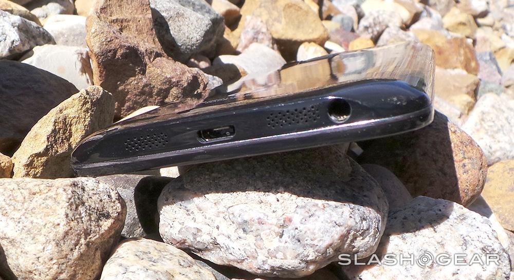 The LG G2 is ahead of the curve here with this sort of sound playback – until we find a need for it, it's a bit unnecessary – overkill, that is. The LG G2 also has a single speaker at its bottom. There are two sets of drilled holes, but a speaker on one side only. This speaker setup can get extremely loud – certainly not louder than the HTC One's front-facing Boomsound speakers, but loud enough to hear in a crowded room.