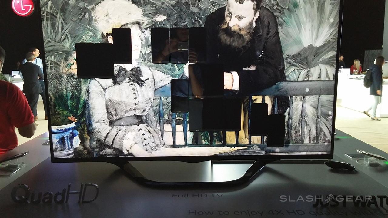 First you're going to have a peek at a single photo taken the by the iPhone 5S. This photo was taken in the dark presentation room for the LG G3 in London. It's a swiftly-snapped shot, and not entirely in-focus, but concentrate on the light quality.