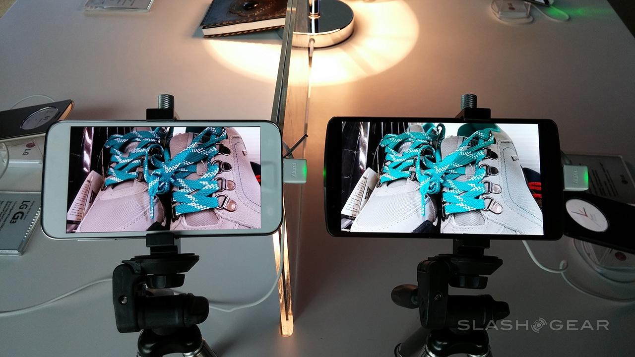 For the front-facing camera you'll find that the 2.1-megapixel shooter is joined by LG's current means of providing a front-facing flash. Instead of using an LED, the LG G3 works with its own display's backlight for a simulation of similar brightness.
