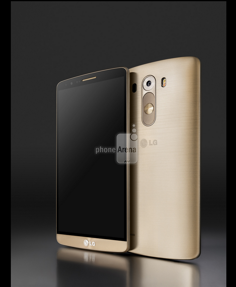 The first LG press renders have been spotted, bringing us the brushed appearance we've been seeing in leaked images. The device will follow the iPhone 5S, offering up a gold, silver, and black option. If the pics are the real deal, and actual press renders, LG has also revamped their rear button array.