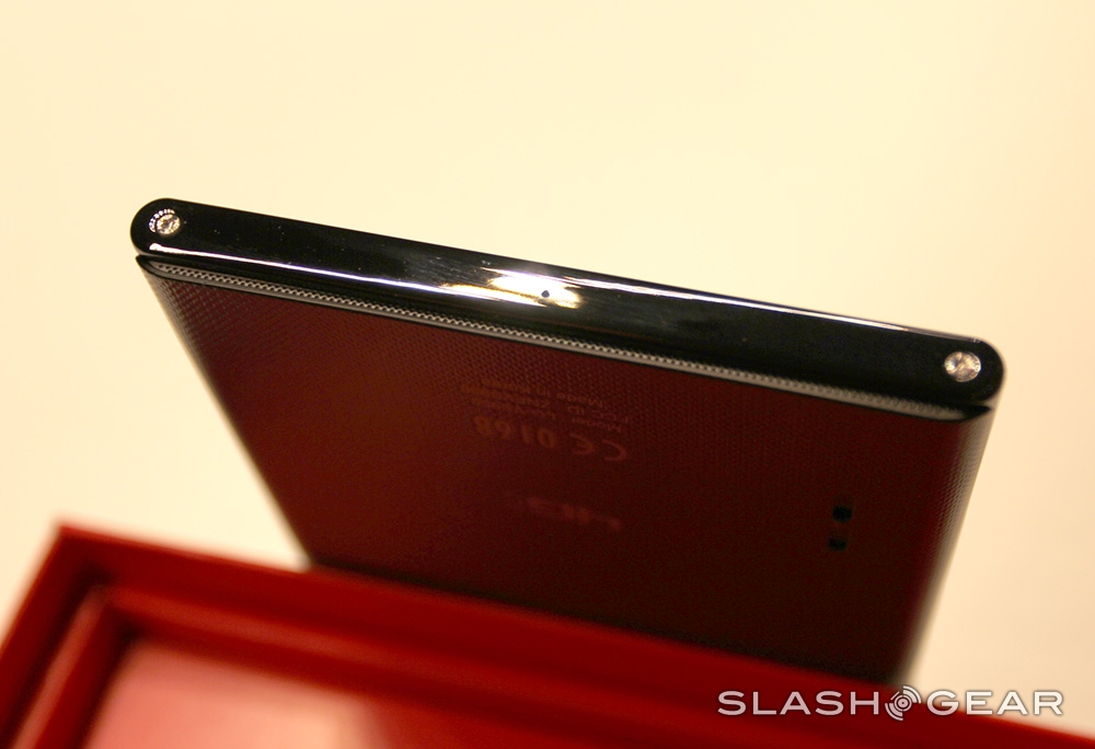 What you've got here is a rather boxy look at the smart device that, though it's not the most elegant smart gadget on the planet, it certainly does appear and feel unique here in 2012. LG's recent efforts have been in devices that have rounded corners and odd shapes – like the LG Lucid with its smooth back and tiny size. There's also the LG Nitro HD with one of the most high-definition display-having devices on the planet at this very moment and a rubbery grip back. What we've got here with the Intuition, on the other hand, is a beast with a pen – a "Rubberdium" pen – and another rubbery grip back so you can hold tight!
