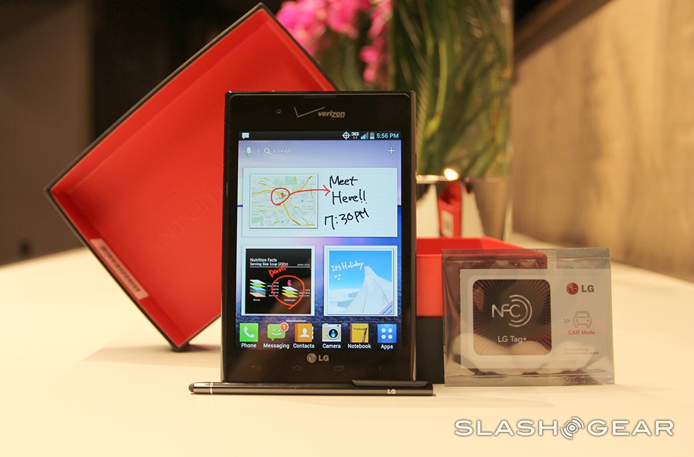 It's time to take another look at the LG version of the in-between segment of smart mobile devices sometimes known as the "phablet" here in the Verizon-carried LG Intuition. We've got our hands on one of these lovely devices today after a short intro by LG in New York City where they've been so kind as to host us and a collection of other publications with the idea being that you're assured the full LG story. The full LG story here is a play-by-play of the abilities and intents of this device as LG wants you to be aware – we'll let you know this as well as the rest in a full review – for now, let's have a hands-on look at the device here in its final form.