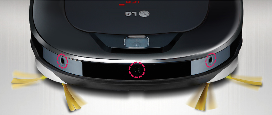 The top camera performs ceiling localization and mapping, while the sensor creates a map of the room it's in and keeps the device's placement within it. The top camera has a sensor that can adjust to darker settings called Illumination Invariant based Simultaneous Localization and Mapping, II-SLAM for short. The device uses ultra-sonic distance sensors, and has a learning function that allows it to adjust to the room it's in.
