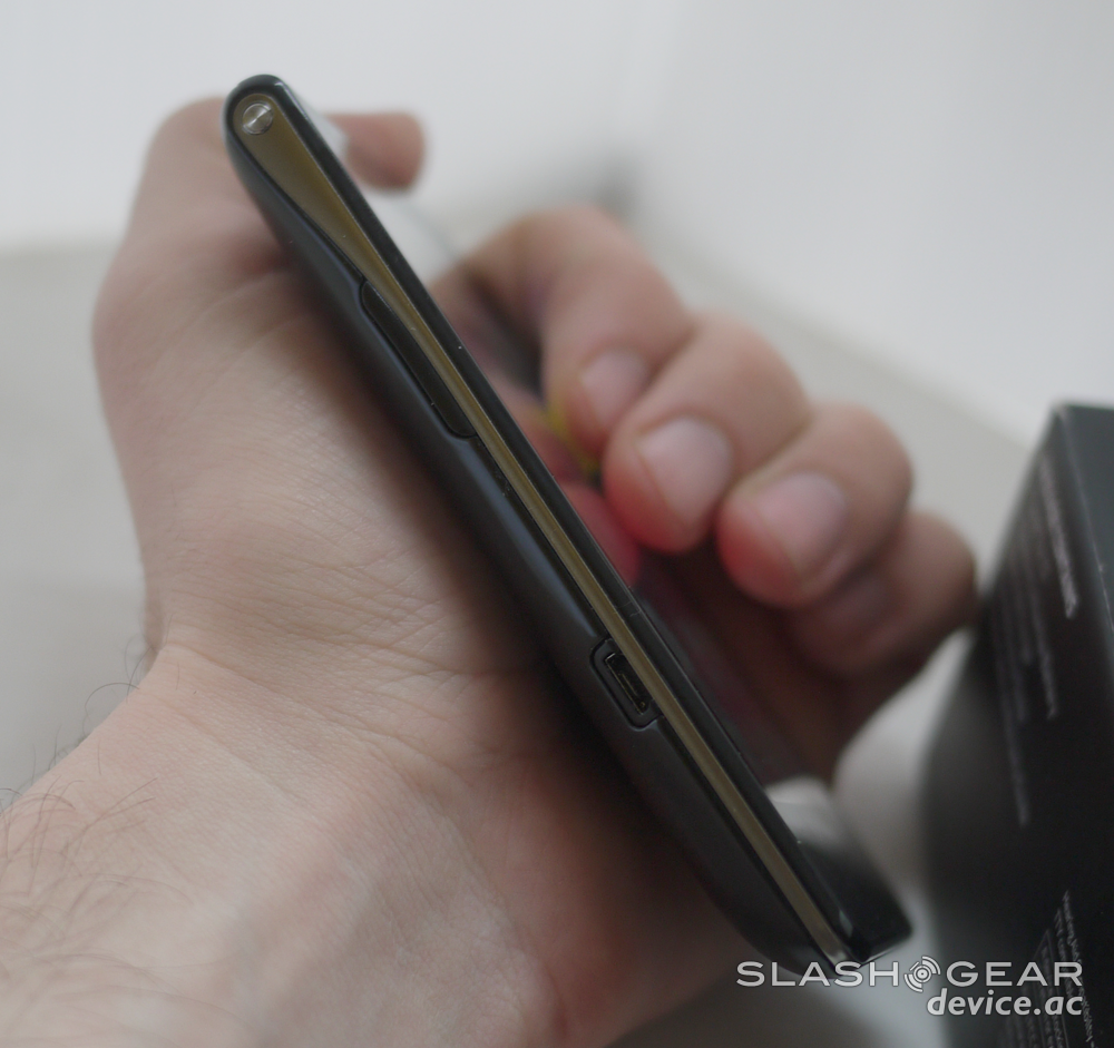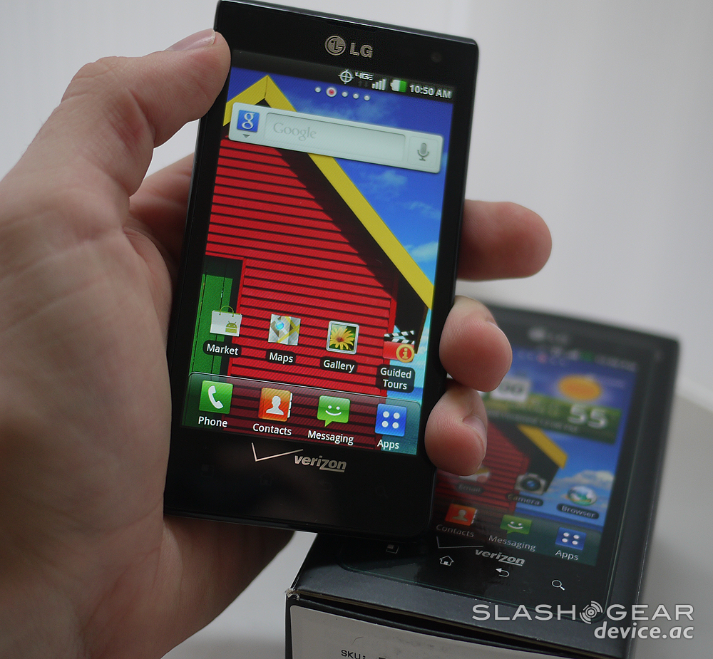 This device has a hard plastic back, curved angles around the entire device for smooth handheld action, and some unique aesthetics in the sides to make this LG stand out from the rest. Inside you'll find 1024 MB of RAM, 8GB of built-in memory, and a microSD card slot so you can expand your memory by up to 32GB if you wish. Have a peek at our first hands-on with this device here: