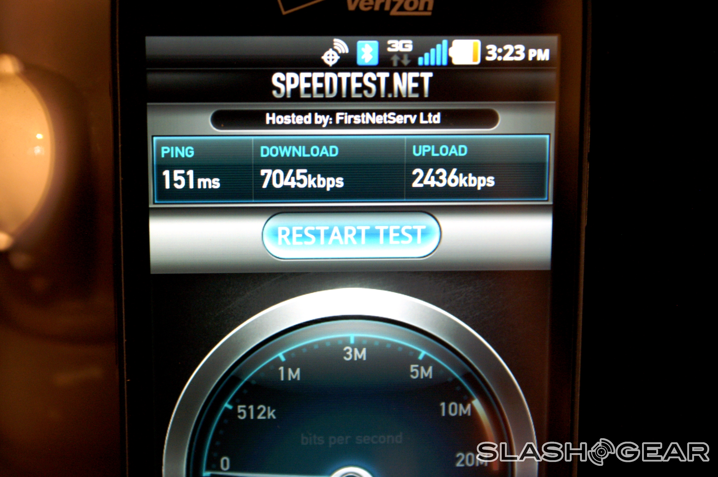 The battery life is what we were more interested in. LG lists up to 435 minutes of talk time and 335 hours of standby. In the SlashGear tests the revolution lasted 9 hours of frequent use before the battery indicator turned red. One charge should be able to make it through an entire work day. But be warned, there are some sure fire battery killers. After 3.5 continuous hours of non-stop internet radio and video, the battery was down to 13%. Mobile Hotspot will also drain the battery fairly quick. Overall we can definitely recommend the battery life of the Revolution over the ThunderBolt. The ThunderBolt ate batteries like a hungry hungry hippo.