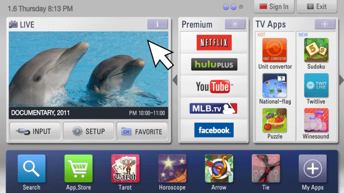 There's also Hulu Plus, Amazon Video on Demand and various live sports streams with LG's partner content providers. LG Apps, meanwhile, offers games, news, music info and more, and can be navigated either via LG's Magic Remote – which has a touchpad – or via an iPhone or Android smartphone and LG's QWERTY remote control app.