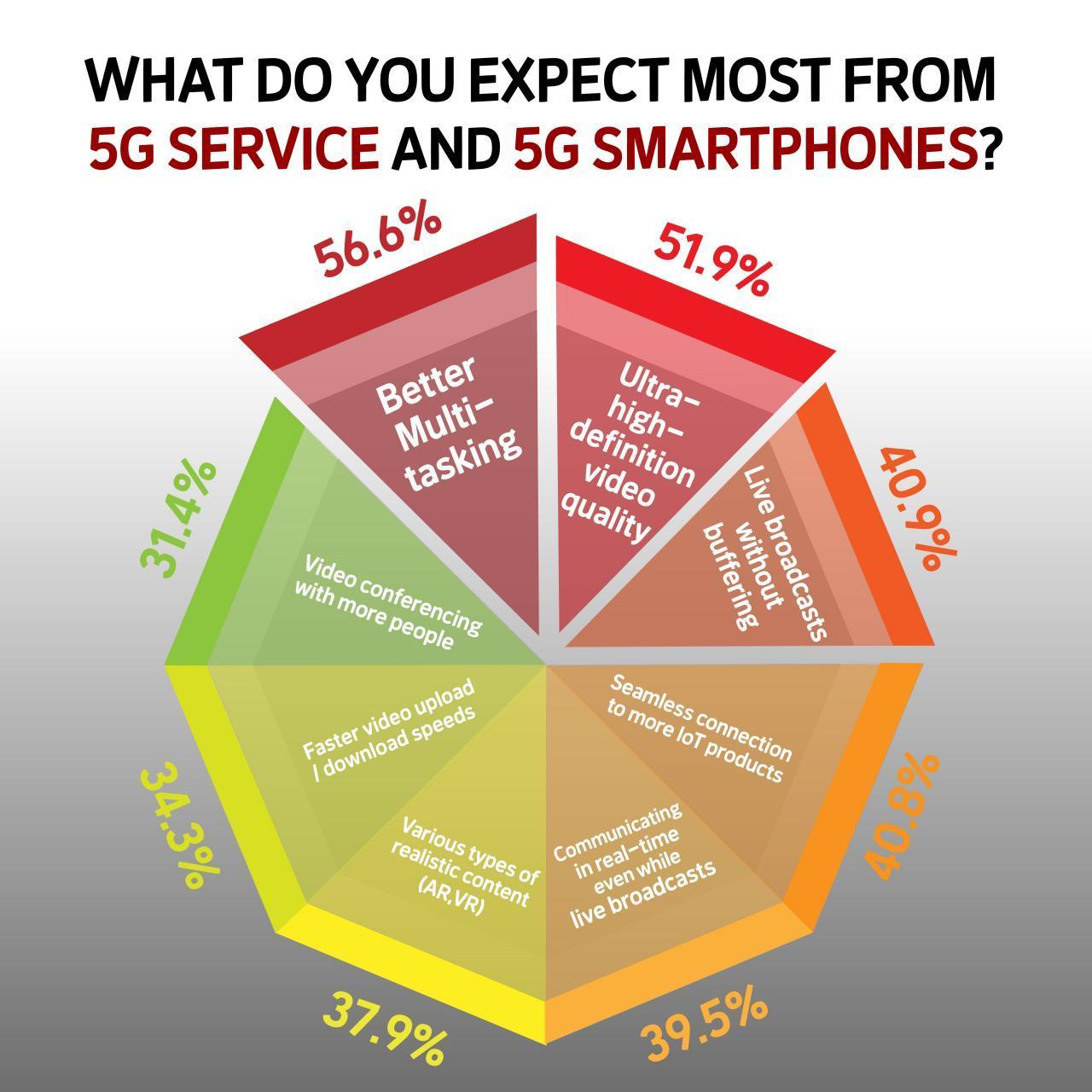 LG also shared an inforgraphic that basically says it's playing the 5G game as well. It surveyed a thousand users in Korea and the US to ask about their expectations of 5G. Amusingly, more than half didn't know they actually need to buy a new 5G-compatible phone to use 5G and that none seem to be too concerned about price. In other words, LG could be setting the stage for an expensive high-end 5G device.