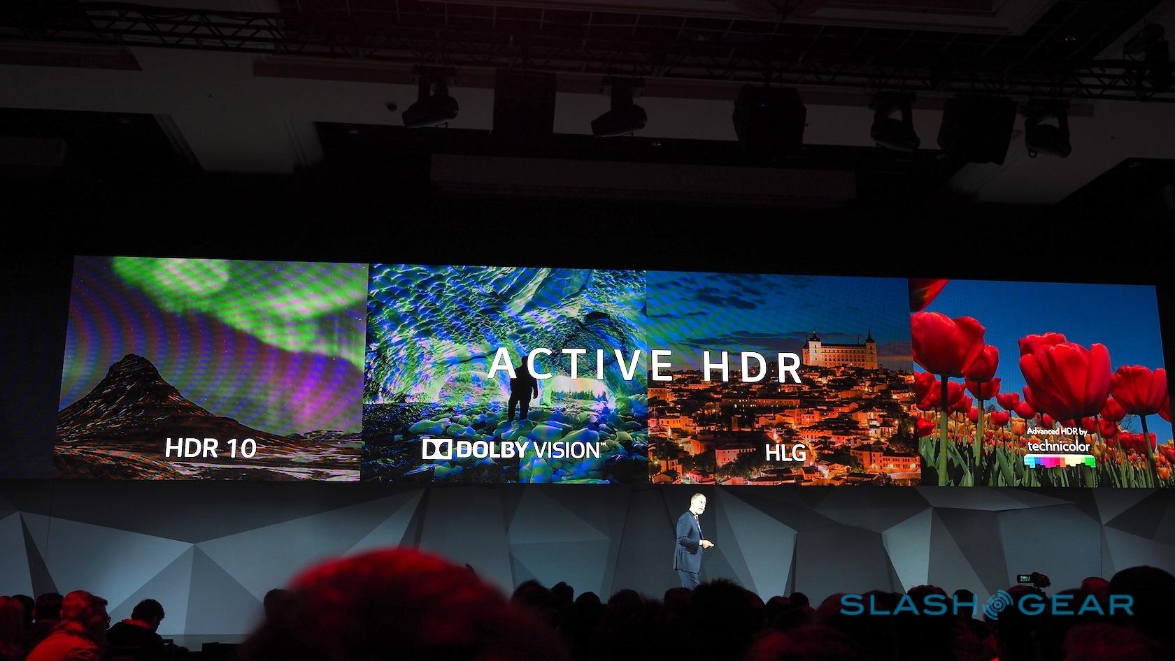 There's Active HDR support, which boosts HDR detail in footage on a frame-by-frame basis, and HDR Effect which is basically HDR upscaling for SDR content. Just as sets of old were expected to upscale standard definition to high definition, so LG is claiming its W-Series will be able to coax richer colors and better contrast ratios from non-HDR material. There's also Dolby Vision, HDR10, and Hybrid Log Gamma support, and when Technicolor's Advanced HDR rolls out the W-Series will support that too.