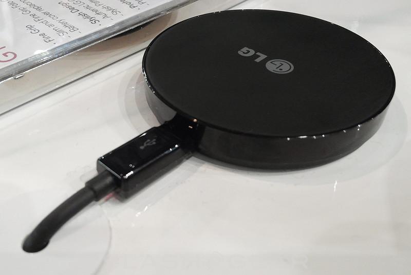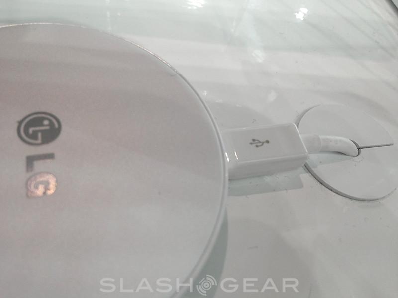 The hockey puck wireless charger, dubbed the WCP-300, charges up Qi-compatible devices, like LG's own Nexus 4, Spectrum 2, and Optimus G Pro, and it sits at just 6.9cm in diameter. The back plugs into a traditional microUSB port in order to feed juice to devices wirelessly. However, only the Spectrum 2 and the Nexus 4 support the wireless charger in the US.