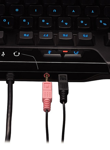 A single USB connection hooks up and powers the G110, and on the back there's a USB host port (ideal for a mouse) together with 3.5mm analog headphone and microphone sockets for your gaming headset. Mac and PC compatible, the Logitech Gaming Keyboard G110 is available now priced at $79.99.