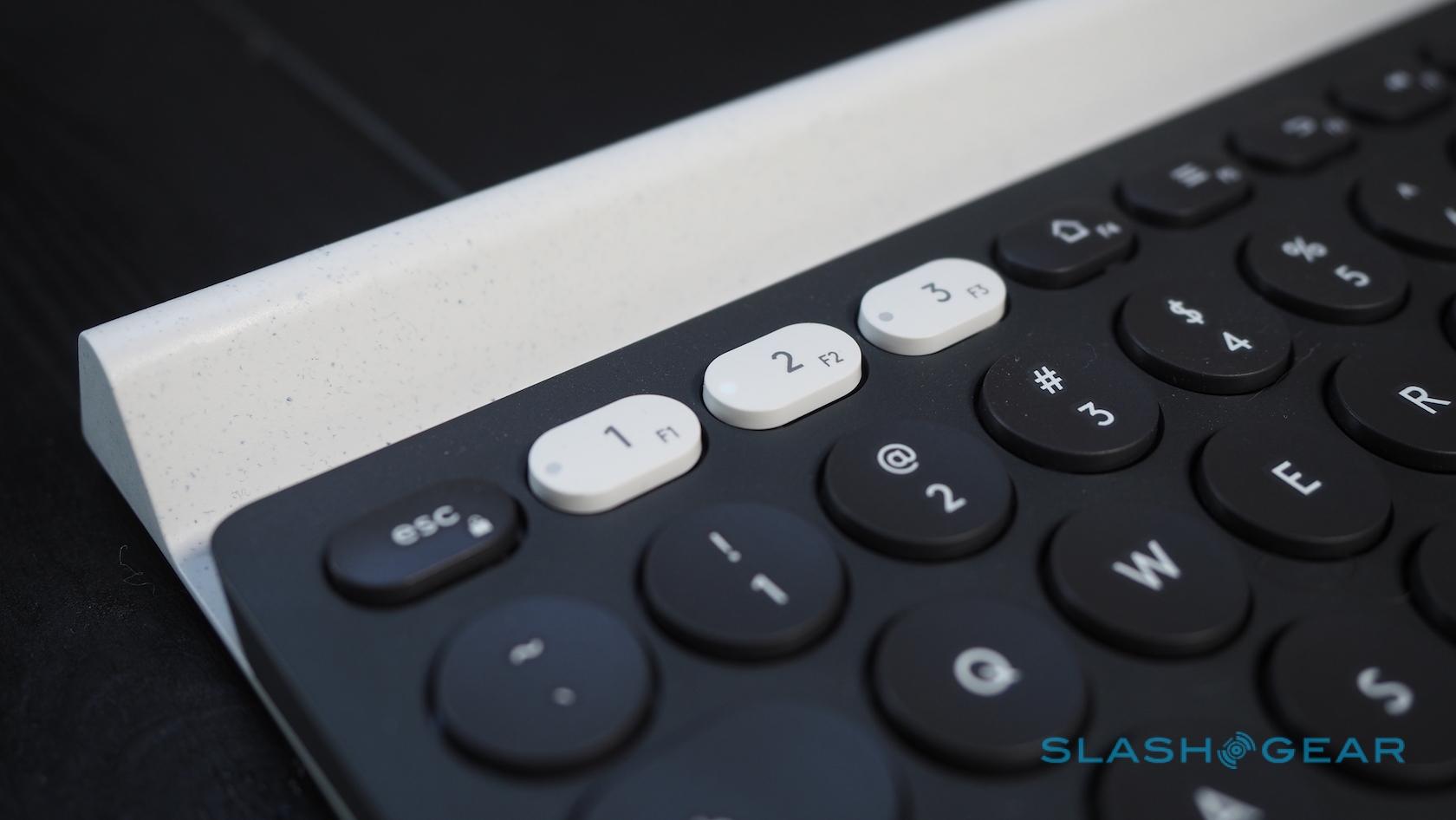 Unlike the wheel in the top left corner of the K480, used to switch between three paired devices, the K780 repurposes the F1-F3 buttons. The first time you press one, it puts the keyboard into pairing mode; later on, you can re-pair a button by holding it down for a few seconds.