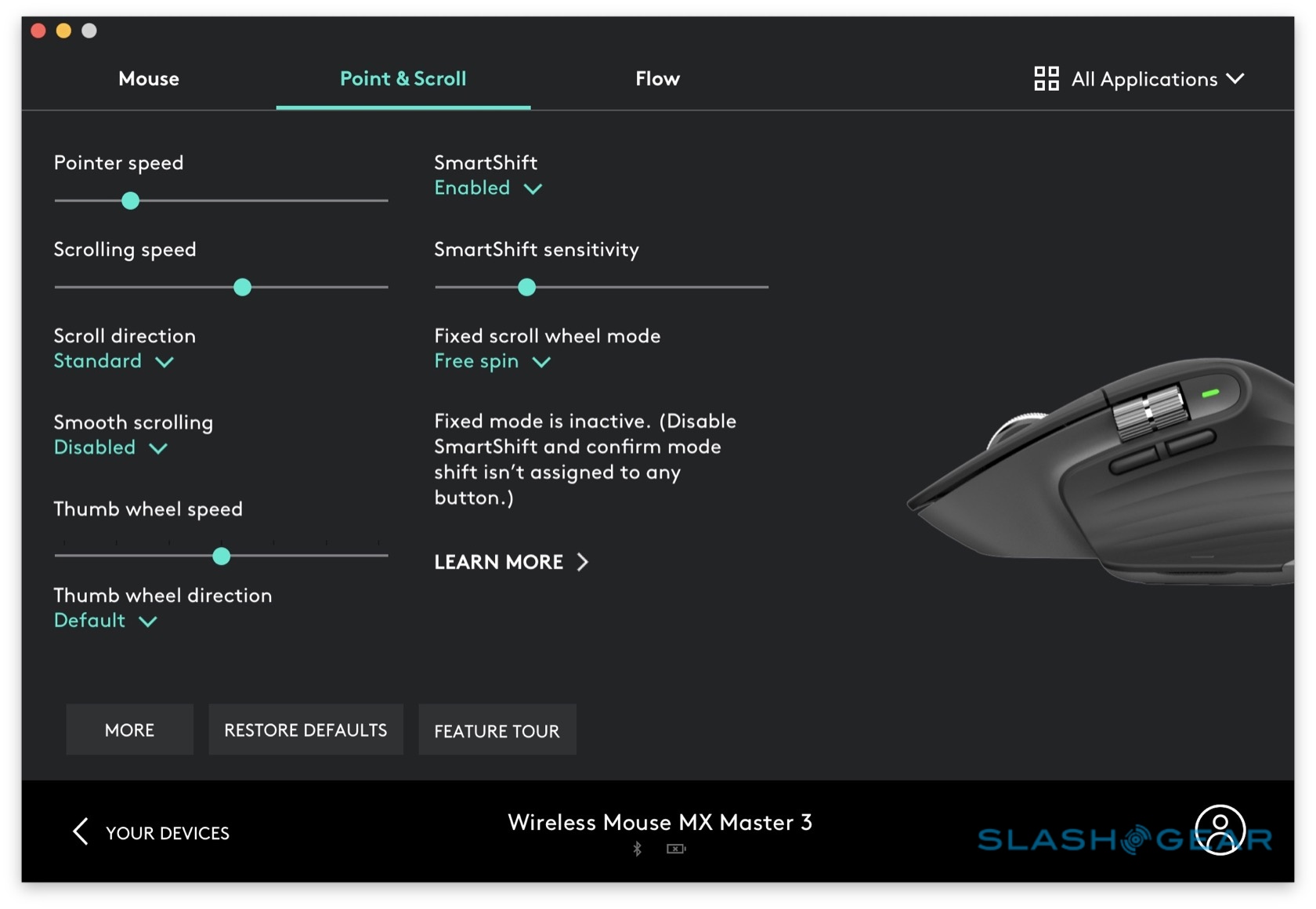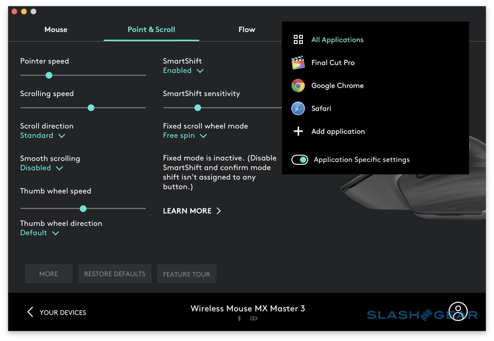 The new mouse features a MagSpeed scroll wheel, which does away with the mechanical mechanism of before and replaces it with a magnetic system. You still get to switch between notched scrolling for precision and free-flowing scroll for long documents, but it's quieter, more precise, and faster. Logitech also includes presets for its deep customization, which get you up and running with different apps faster.