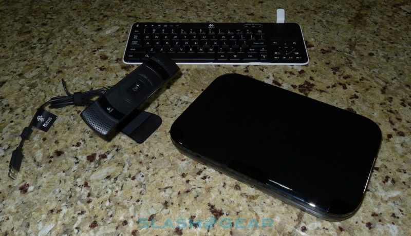 Google TV supports video calls, though Logitech's package doesn't come with all the necessary hardware as standard. Instead, you'll need the TV Cam webcam, an expensive $149 addition that plugs into one of the USB 2.0 ports on the back of the Revue (we'd like to have seen a front-panel port as well). Regular USB webcams won't work, unfortunately, since the TV Cam has its own 720p hardware encoding kit inside, though video calls can be held with anyone using Logitech's free Vid HD software, available for PC and Mac.