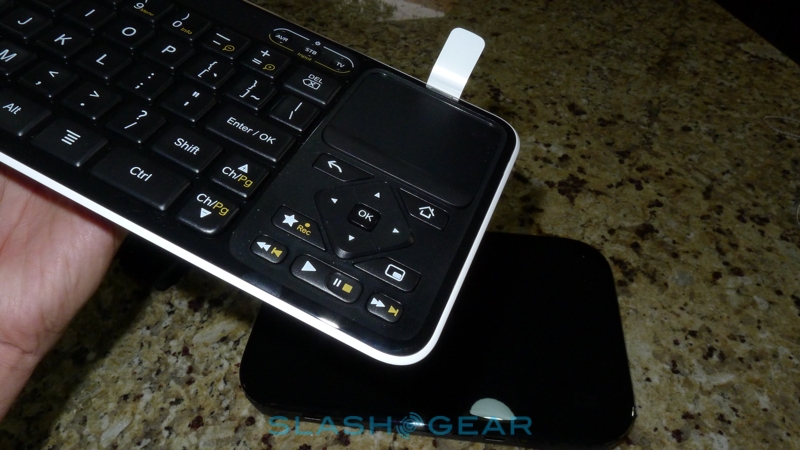Also in the box is Logitech's standard Google TV controller, a wireless keyboard with integrated trackpad and multimedia buttons. It's a sturdy, reasonably tactile device, but it's certainly not discrete, and if you find regular button-encrusted remotes off-putting then the Revue's 'board will likely smack a little too much of the home office. As you'd expect from a peripheral manufacturer, the keys are solid for typing and we had no problems with connectivity, though we'd prefer it if there had been key backlighting for easier nighttime use. Logitech offer a separate mini keyboard, priced at a hefty $130, which is better scaled to the living room, but we can't help but look at the Boxee Box remote – with its simple controls on one face and a scaled down QWERTY thumbboard on the reverse – and wish Logitech had done something similar.