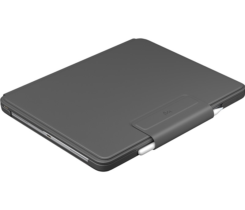 What's particularly clever, though, is how Logitech accommodates the second-generation Apple Pencil. Since that charges while clinging magnetically to the edge of the iPad Pro, Logitech has added a space for it to be accommodated in the case design. There's a magnetic latch holding the Slim Folio Pro closed; in the process, it protects both the front and the back of the tablet.
