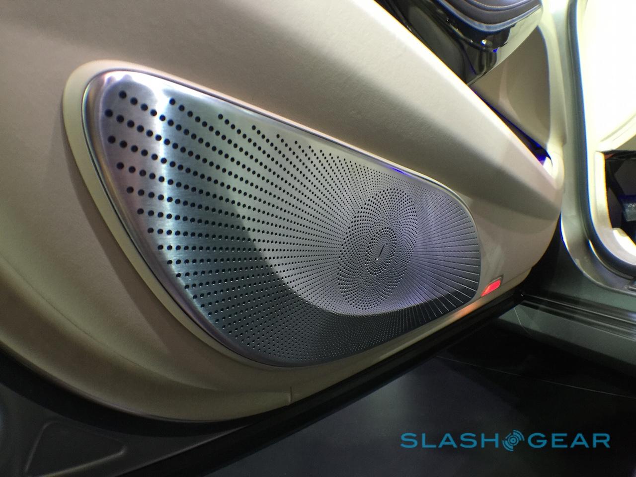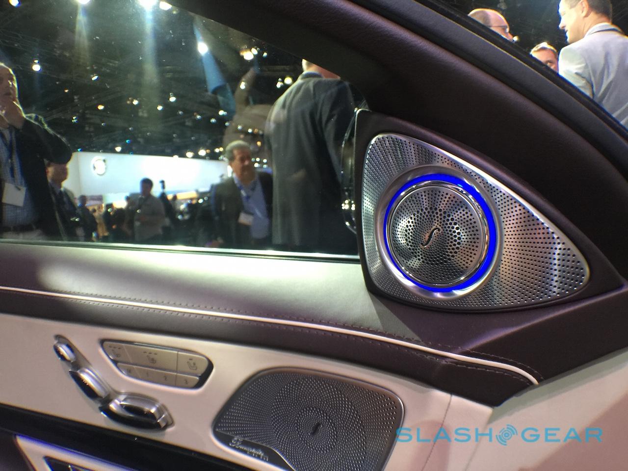 Tech isn't in short supply. There's HD Voice Bluetooth for calls on compatible networks, and an intercom system to allow rear passengers and their chauffeur to communicate without shouting. A Burmester 3D surround sound system packs 1540 W and 24 speakers, each with its own amplifier: the tweeters are even motorized, swiveling out from the rear doors to better face the occupants.
